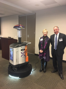 Healthcare associated infections (HAIs) are the fourth leading cause of death in the U.S. They are infections passed to innocent patients during hospital stays. These infections, such as MRSA and C.diff, can devastate and kill patients. Xenex’s mission is to save lives and reduce suffering by eliminating the deadly microorganisms that cause HAIs. It is accomplished with a germ-zapping robot. This is the only technology shown in approximately 23 peer-reviewed published studies in leading journals to reduce infection rates by 50-100%. Morris will describe and show us how the Xenex robot works. He will explain why it is so much more effective than other solutions available today.